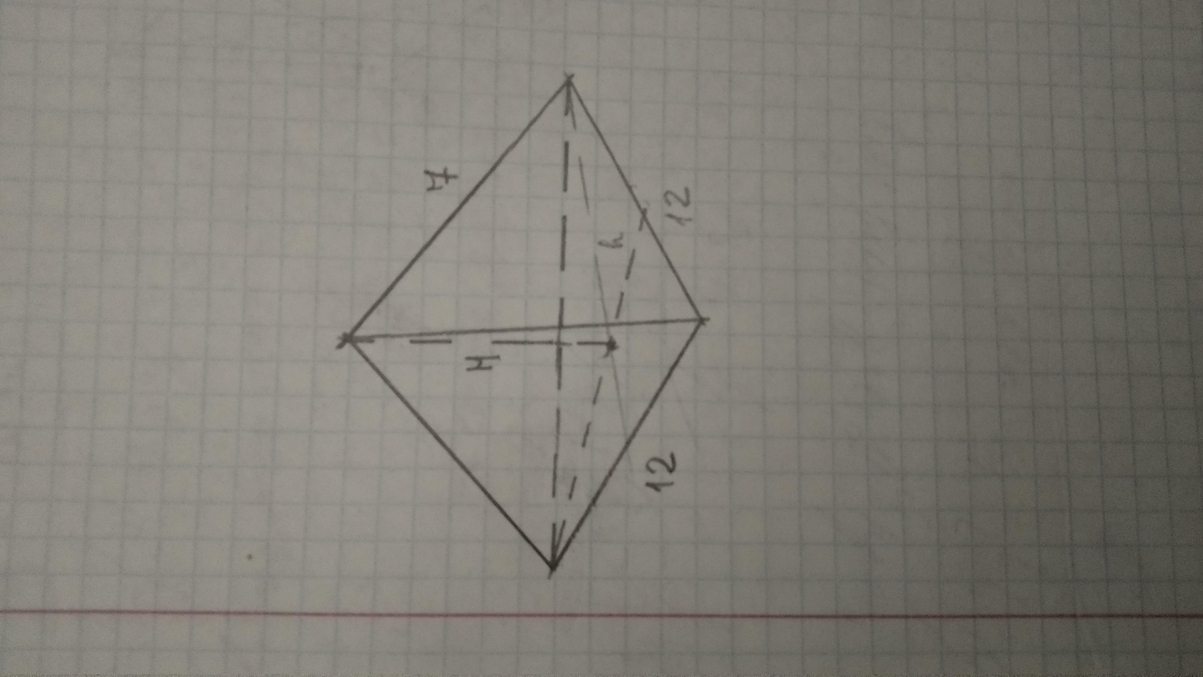 у правильной пирамиды в основании правильный треугольник а=12, его площадь равна а²√3/4=12²√3/4=36√3(см²)
