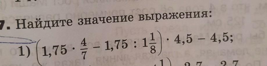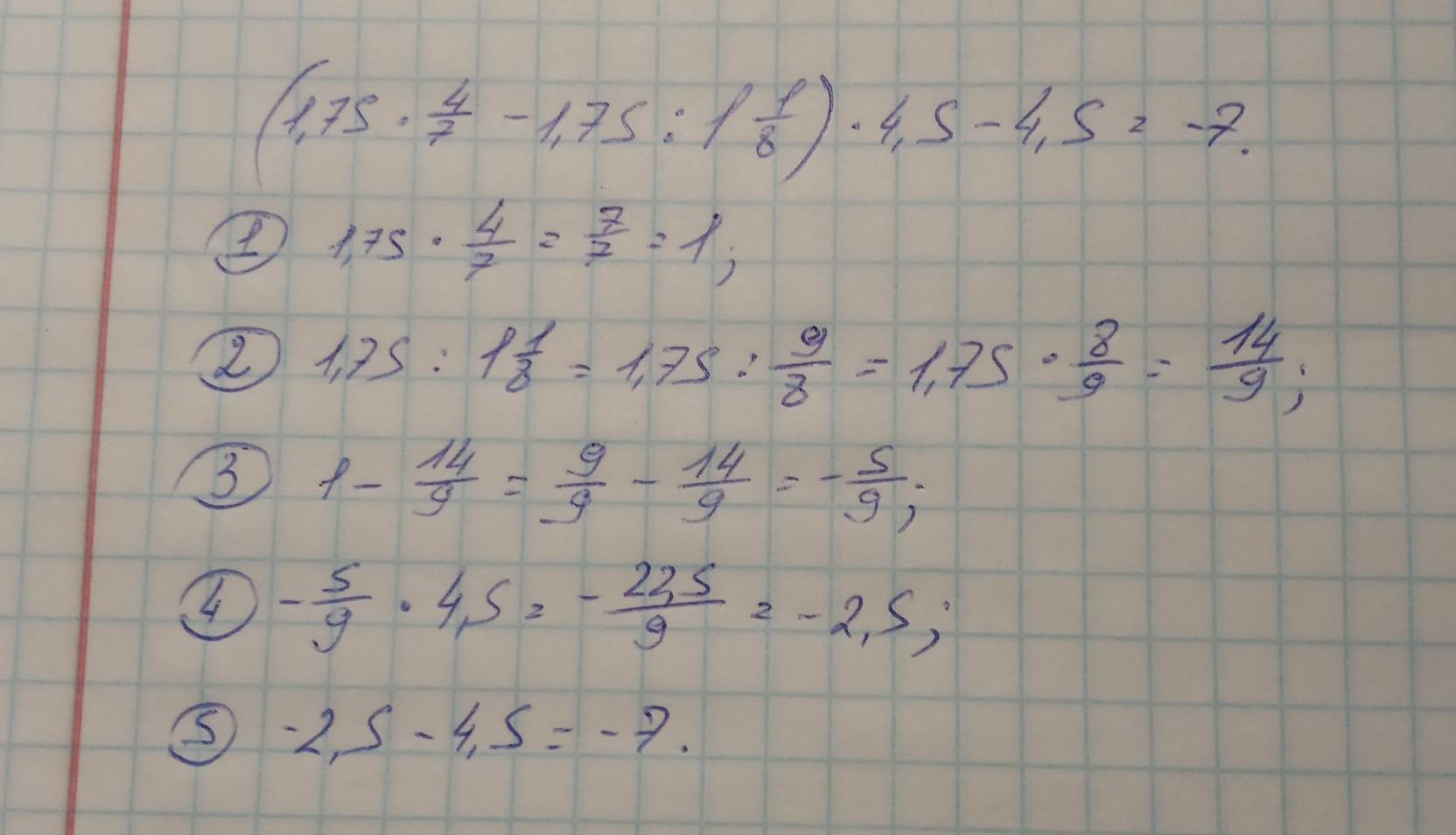 (1,75 × 4/7 - 1,75 : 1 1/8) × 4,5 - 4,5 = -7.