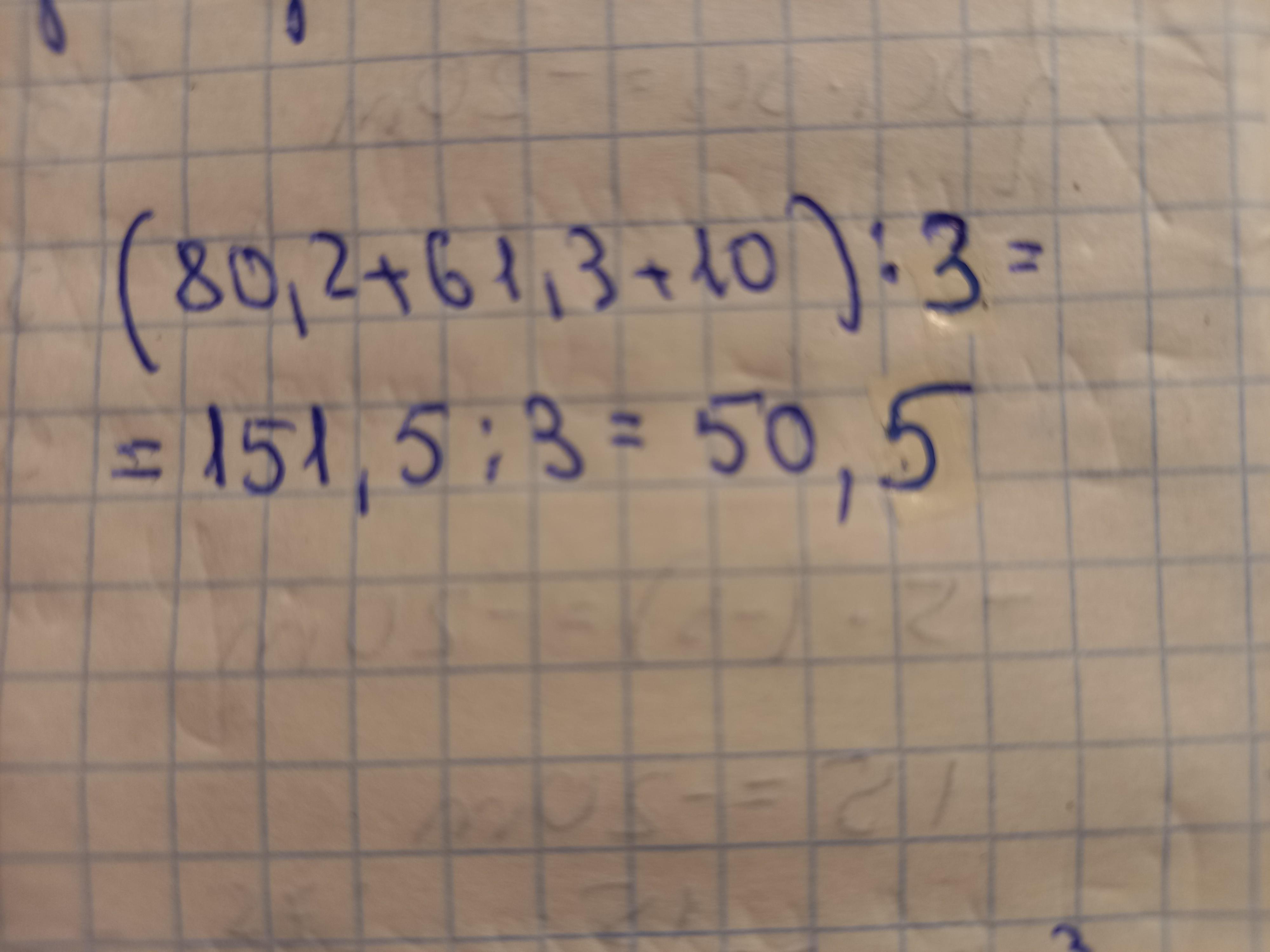(80,2+61,3+10)÷3=151,5÷3=50,5