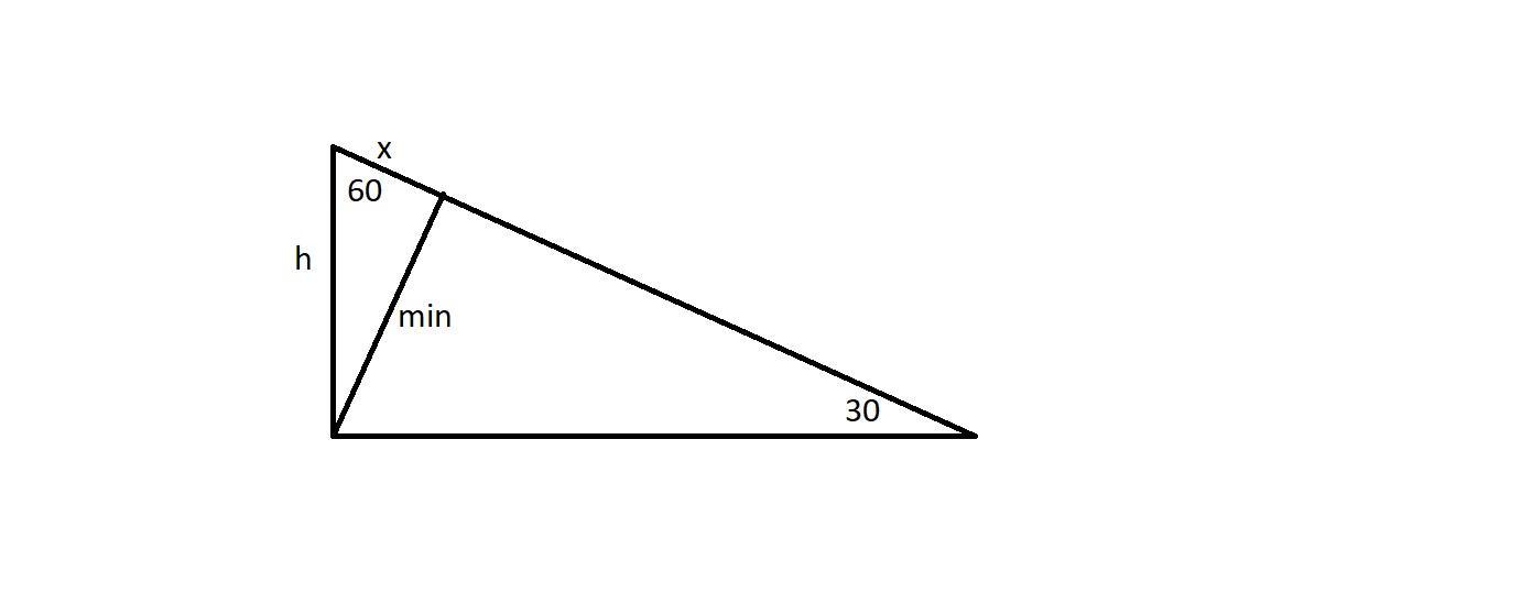x=h*cos60°=h/2 (путь до точки с минимальным расстоянием)
