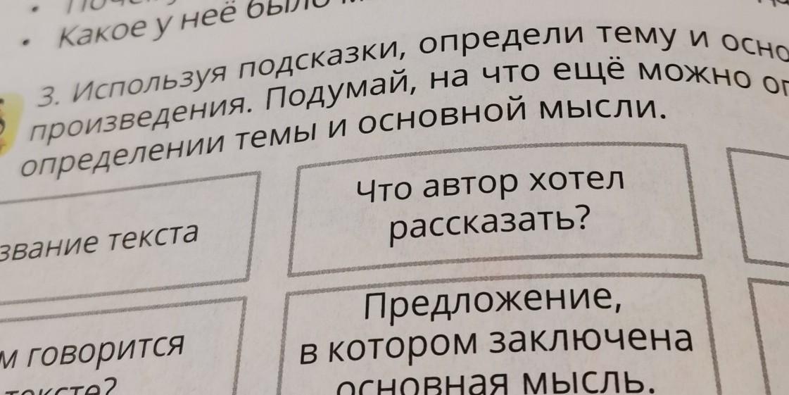 Подумай, на что ещё можно опиратьсят 3. Используя подсказки, определи тему и основную определении темы и основной мысли Что автор хотел рассказать? Предложение, в котором заключена основная мысль. ойн на тему «Космос». Название текста чём говорится в тексте? по ?