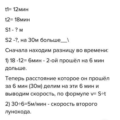 10 Реши задачу. Дети собрали две модели лунохо- дов. Один работал 12 минут, другой - 18 минут. Причём второй преодолел расстояние на 30 метров больше, чем первый. Сколько метров преодолел каждый луноход? Можно в Таблице? пожалуйста