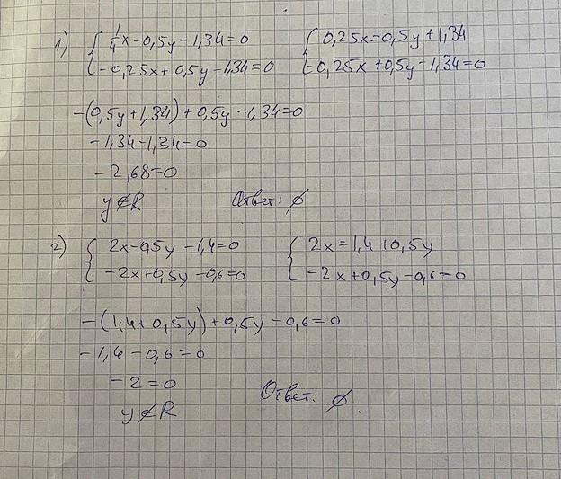 Найдите решение систем уравнений или докажите, что систе- мы не имеют решений (1250—1260): 2 примера даю 25 балов