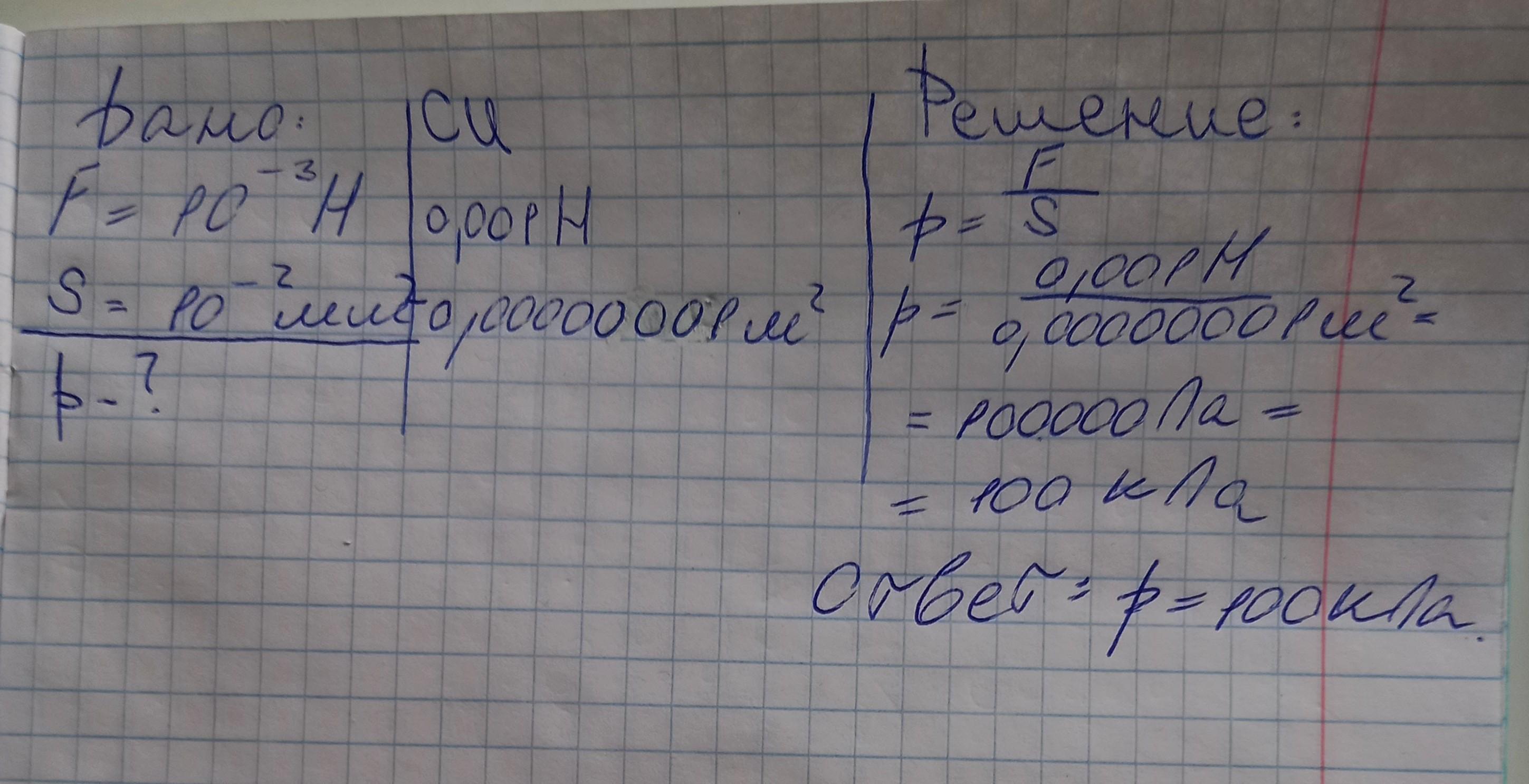 оса воздействует на тело человека с силой 10 в минус в третьей степени Н , площадь острия 10 в минус второй степни мм в квадрате , найдите P