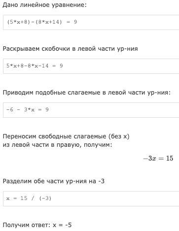 ОТВЕТ: (5х+8)-(8х+14)=9=-5
