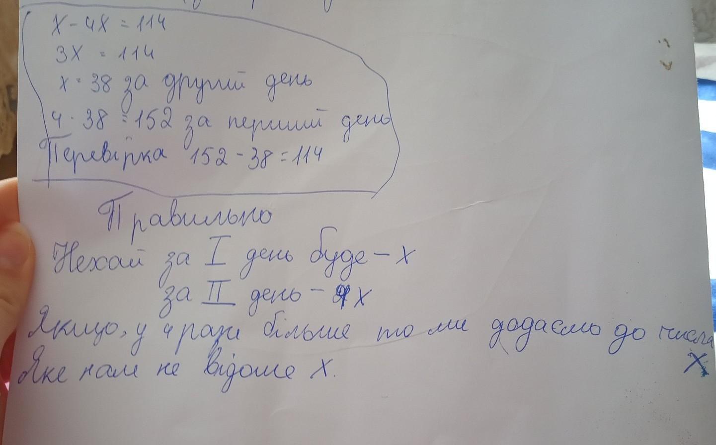 6.Скласти рiвняння і розв'язати задачу. У магазині продали картоплю за два дні, причому за перший день продали у 4 рази більше картоплi, нiж за другий. Скільки картоплі продали за кожен день, якщо за лругий день продали на 114 кг менше, ніж за перший? дам 100 балівв