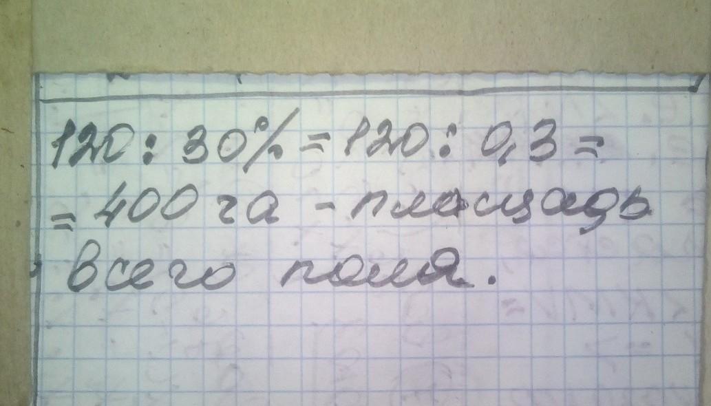 Комбайни скосили пшеницю на 120 га, що становить 30% площі поля. Знайдіть площу поля. ДАЮ 100 БАЛЛОВ СРОЧНО!