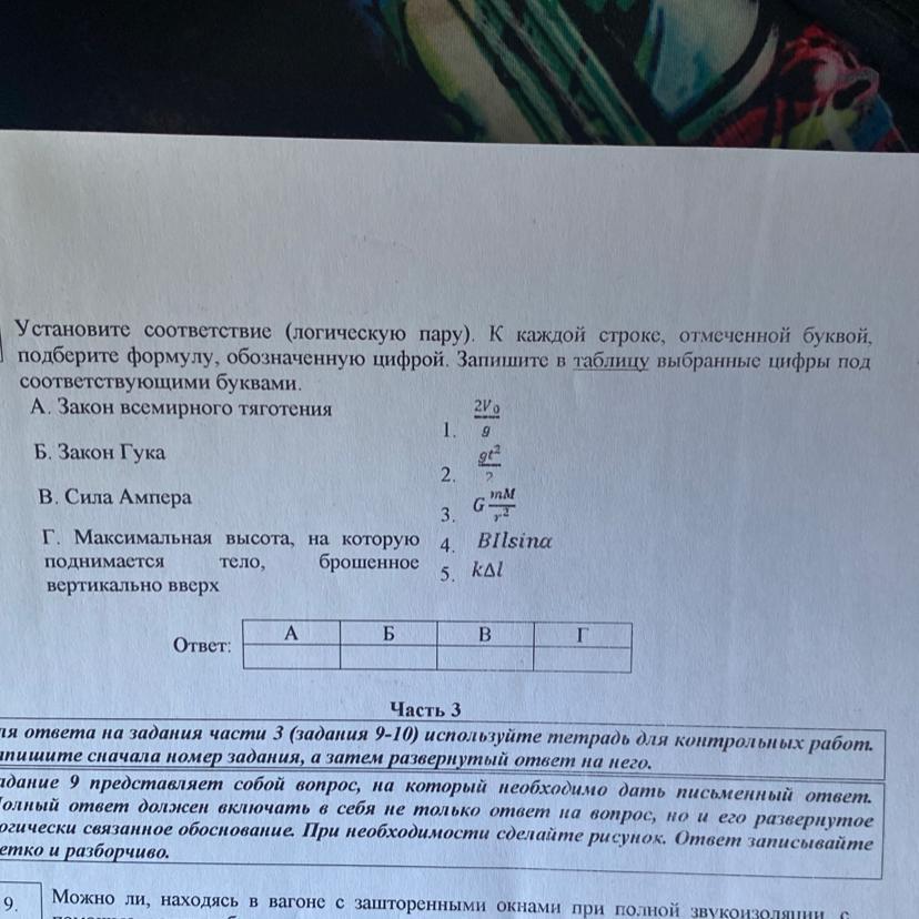 Установите соответствие (логическую пару). К каждой строке, отмеченной буквой, подберите формулу, обозначенную цифрой. Запишите в таблицу выбранные цифры под соответствующими буквами.