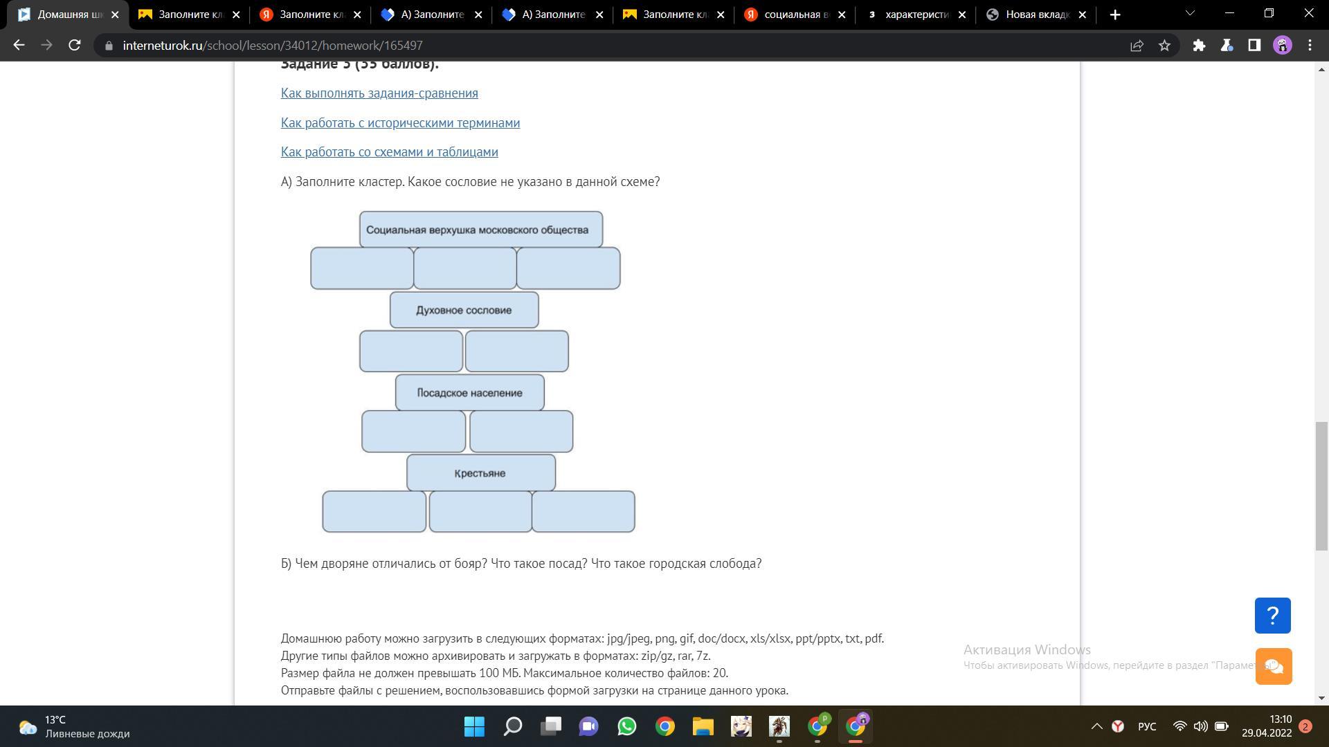Заполните кластер. Какое сословие не указано в данной схеме?