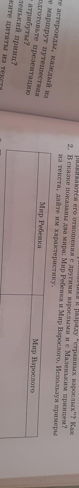 ЛМЬЕРАТУРА МРОЧНО ПОЖАЛУЙСТА 2. В сказке показаны два мира: Мир Ребенка и Мир Взрослого. Используя примеры из текста, дайте им характеристику. Мир Ребенка Мир Взрослого