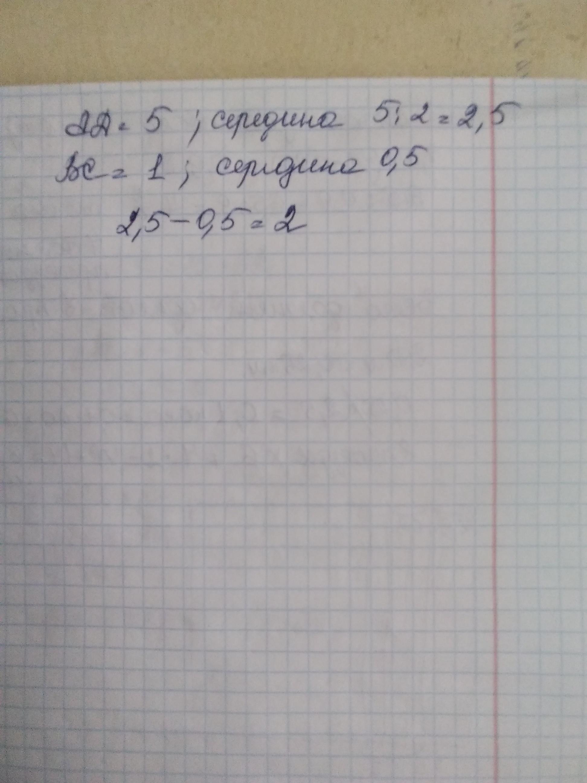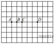 На клетчатой бумаге с размером клетки 1 × 1 отмечены точки А, В, С и D. Найдите расстояние между серединами отрезков AD и BC.