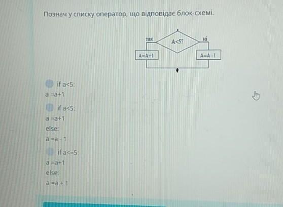 Цей варіант нам підходить, бо дві умови, але дві умови й в третьому, але в третьому йде перевірка: якщо а менше та дорівнює п'яти, а в блоці тільки а менше п'яти, отже другий варіант нам підходить