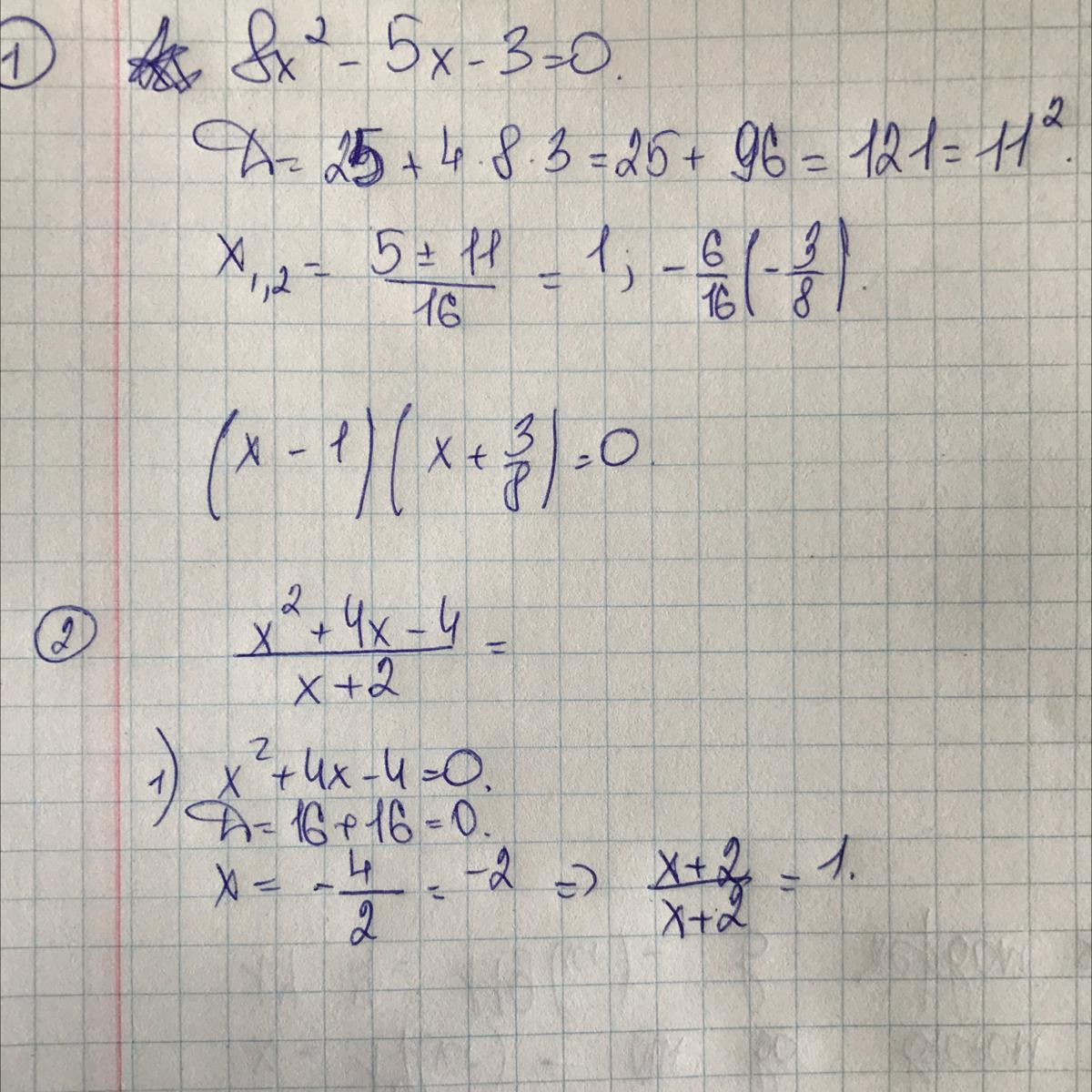 1. Розкласти на множники тричлен 8х^2 - 5х -3