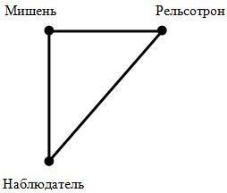 Обозначим треугольник MNR, M - мишень, N - наблюдатель,