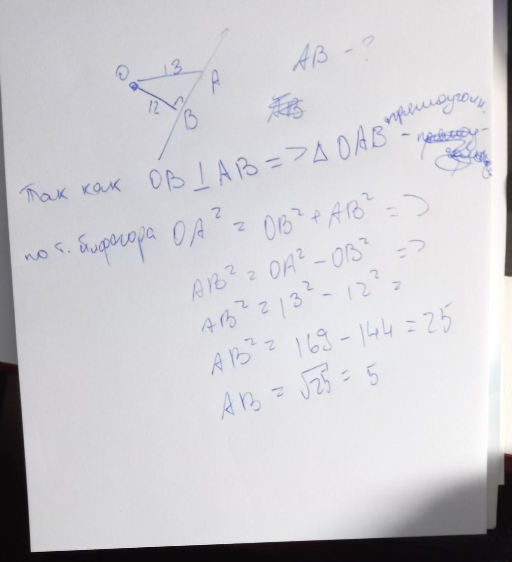 З точки до прямої а проведено перпендикуляр і похилу . Знайдіть довжину проекції похилої, якщо = 12 см, = 13 см.