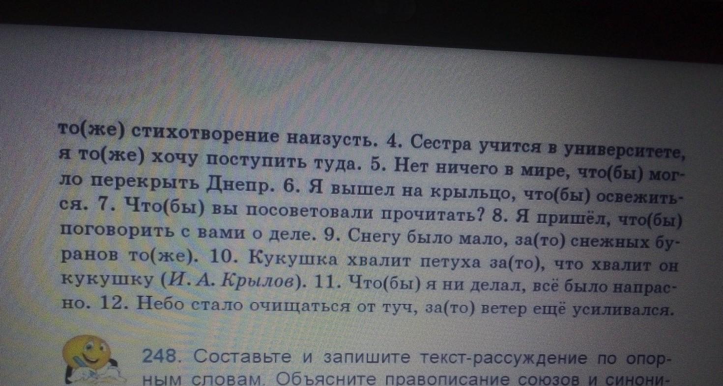 2) Приют наш мал, за(то) спокоен. 3)Девочка прочитала вслух стихотворение А. С. Пушкина, её брат повторил то(же) стихотворение наизусть,
