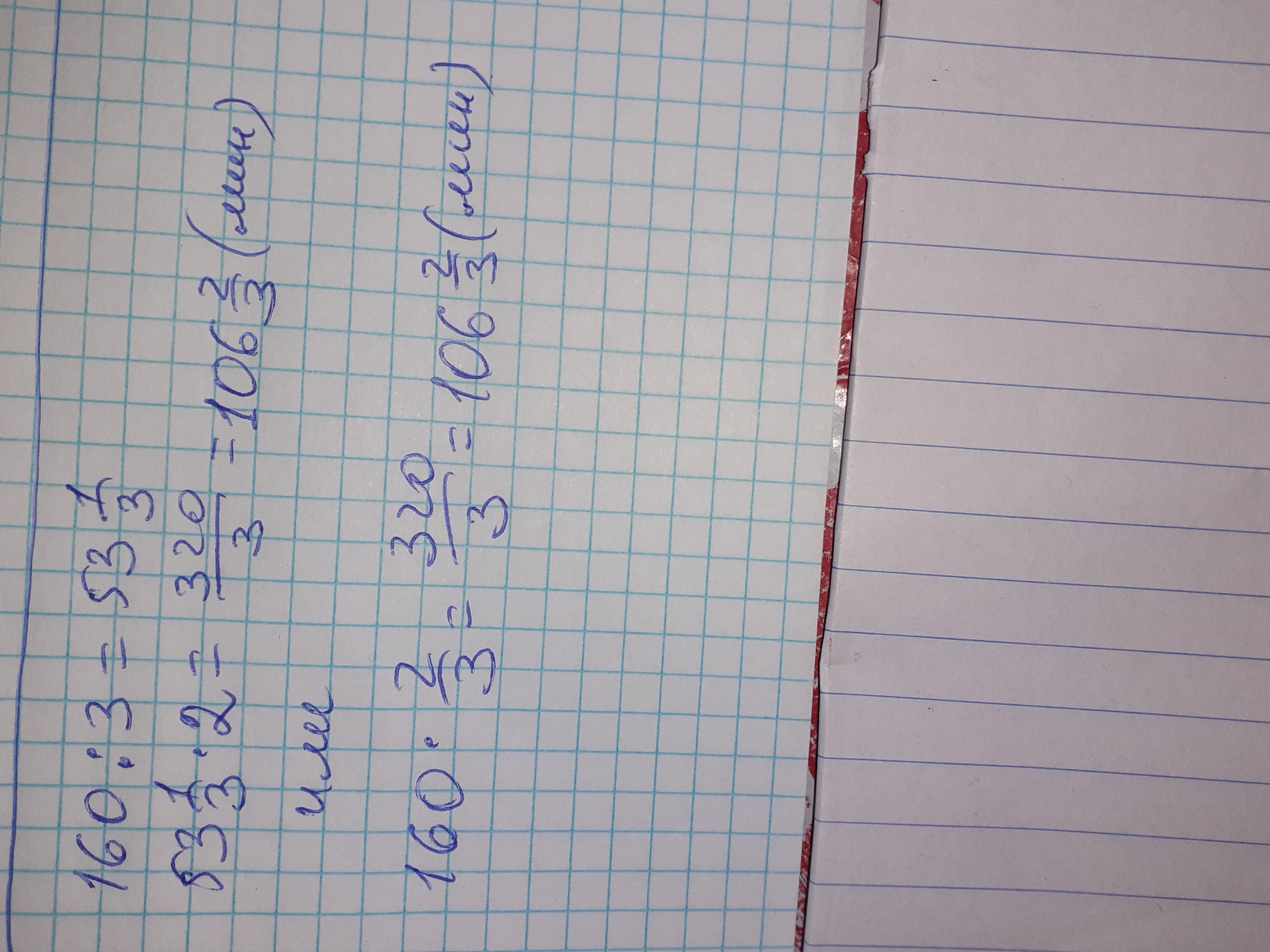 так как всю книгу она прочитала за 160 минут ,а нам надо узнать сколько времени занимает чтение 2/3 книги значит нужно 160:3= 53,34 так как книгу поделили на 3 части.
