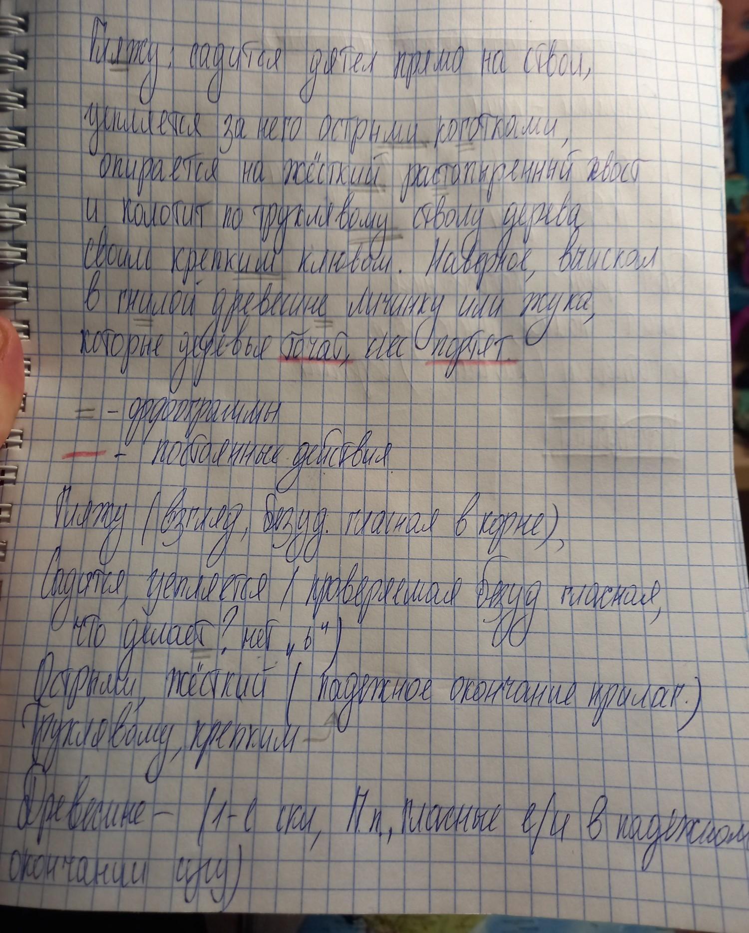 Текст я переписал уже с правильным написанием слов, орфограммы все подчёркнуты и их написание я объяснил ниже, постоянные слова подчёркнуты красным карандашом + два разбора по орфограммам,