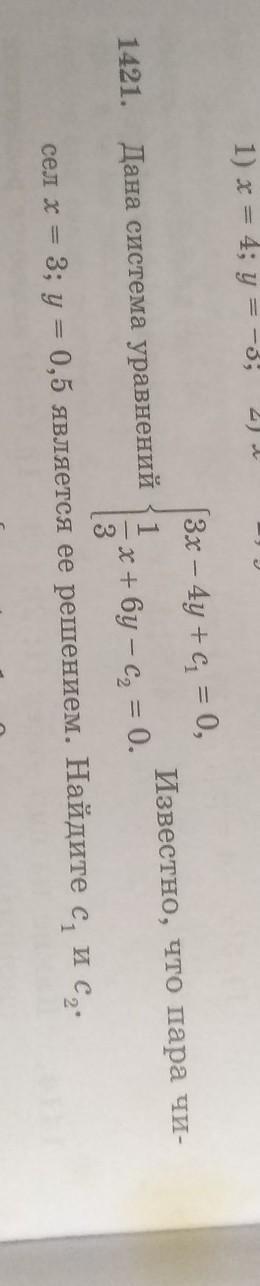 [3x-4y + c = 0, 1421. Дана система уравнений 1 x+6y - c = 0. 3 сел х = 3; у = 0,5 является ее решением. Найдите с ис.. Известно, что пара чи-