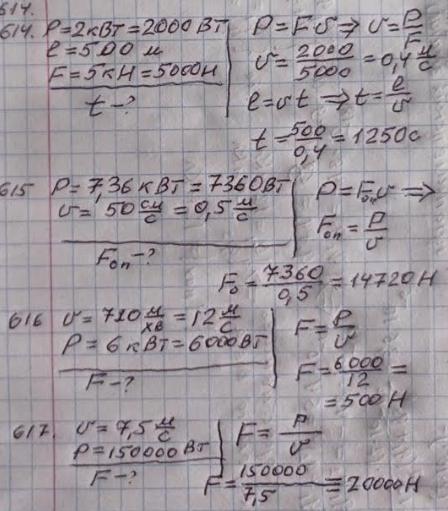 616.Двигун токарного верстата при швидкості рі зания 720 м / хв розвиває потужність 6 кВт . Визначте силу опору стружки . 617. Учені підрахували , що кит , плаваючи під водою iз швидкістю 27 км / год , розвива потужність 150 кВт . Визначте силу опору води рухові кита .