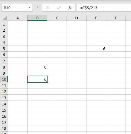 в ячейки b8 электронной таблицы записана формула =e$5/2+3 в ячейке E5-число 6. Содержимое ячейки B8 копируется через буфер обмена в ячейку B10.