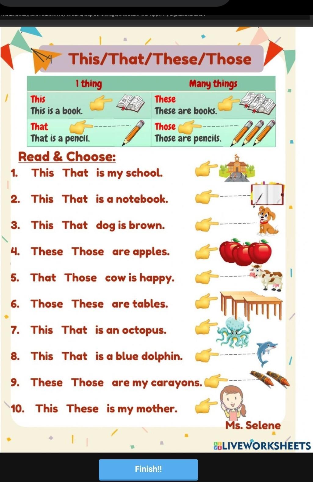 These- пишется во множественном числе, когда предметы рядом