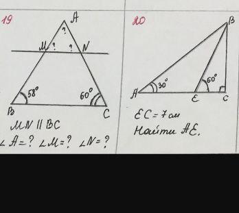 19) ∠А=180°-∠В-∠С=180-58-60=62°