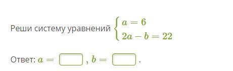 \displaystyle \left \{ {{a=6} \atop {2a-b=22}} \right. \\\\2*6-b=22\\b=-10\\(a,b)=(6,-10)