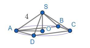 В прямоугольном треугольнике SAO длина гипотенузы SA равна 4, значит катет, лежащий напротив угла SAO в 30 градусов будет равен половине гипотенузы, значит SO=4/2=2.