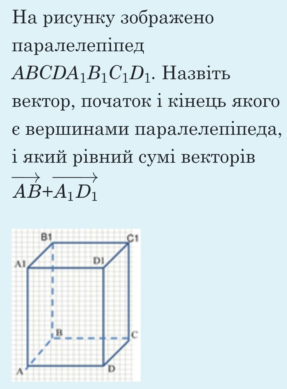 Вектори AB1 + A1D = A1C1 (по правилу додавання векторів)