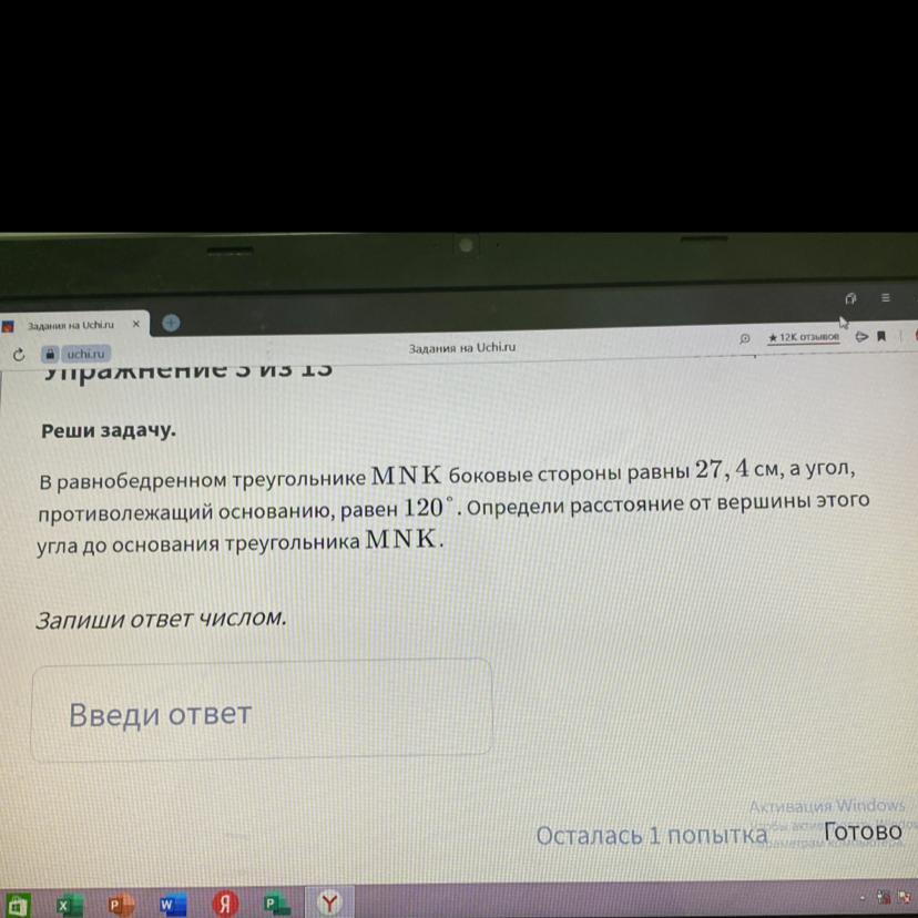 Если в прямоугольном треугольнике есть угол 30 градусов,то катет, лежащий против него равен половине гипотенузы. В данном случае боковая сторона - гипотенуза, х-катет против 30°, следовательно х=0,5*27,4=13,7см