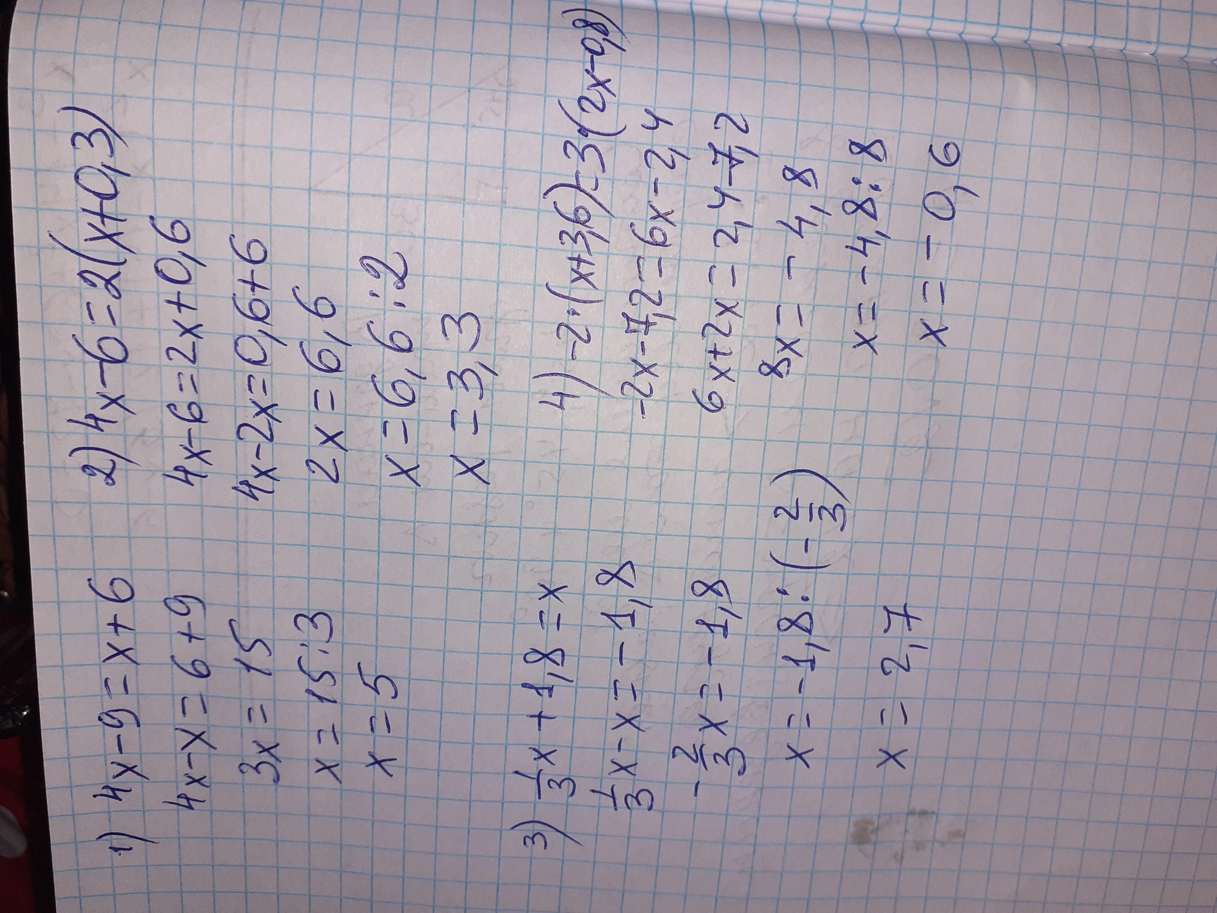2) 4х-6=2*(х+0,3)