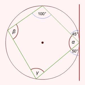 т.к. окружность описана около четырехугольника, то сумма противолежащих углов равна 180°⇒Υ=180°-100°=80°