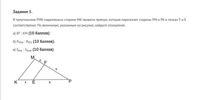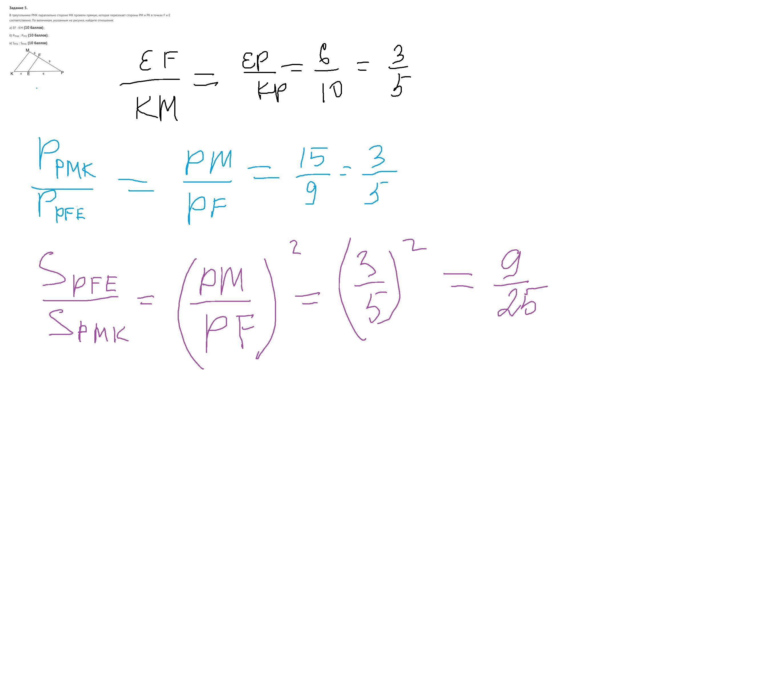 Да уж, добросовестно 15/9= 5/3(а не 3/5) , а S(PFE)/S(PMK)=(PF/PM)²=(3/5)²=9/25
