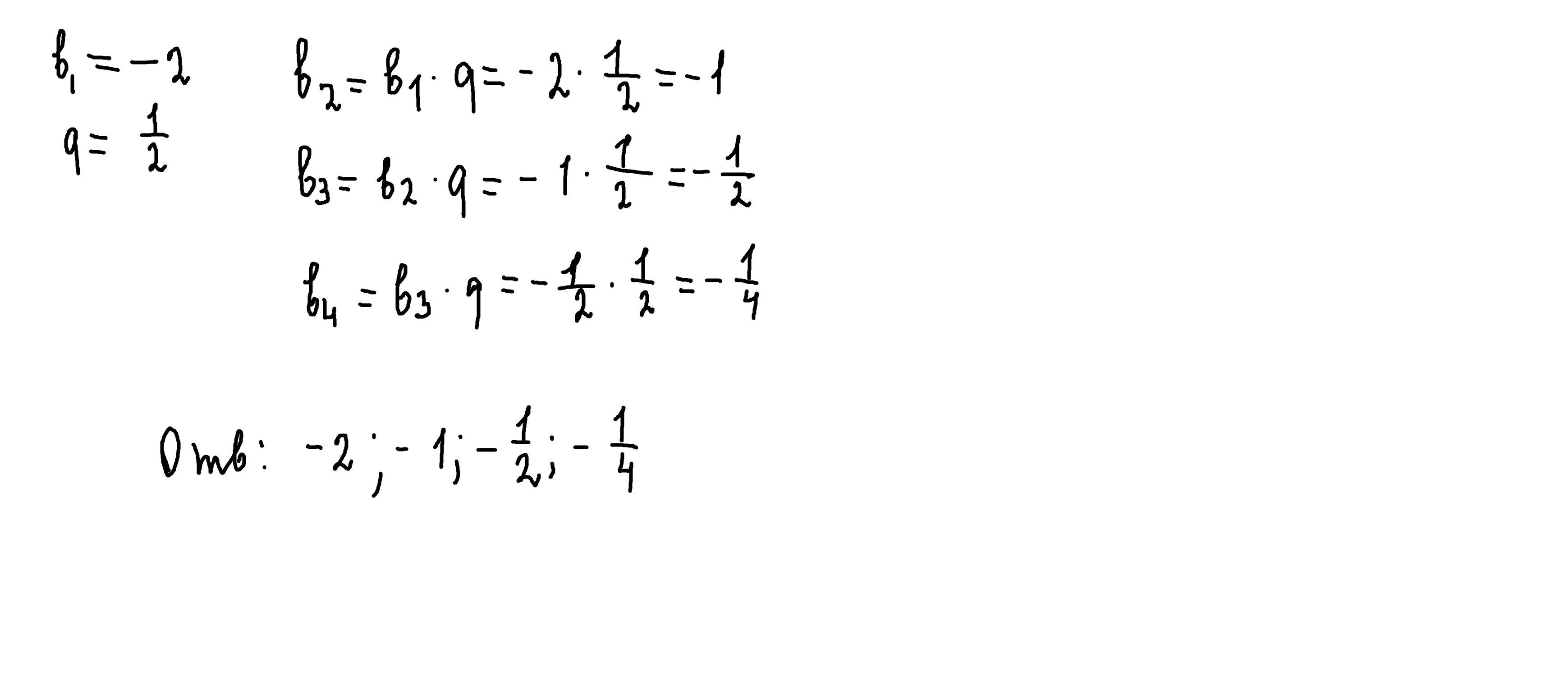 Найти первые четыре члена геометрической прогрессии, если первый член равен -2, знаменатель 1/2