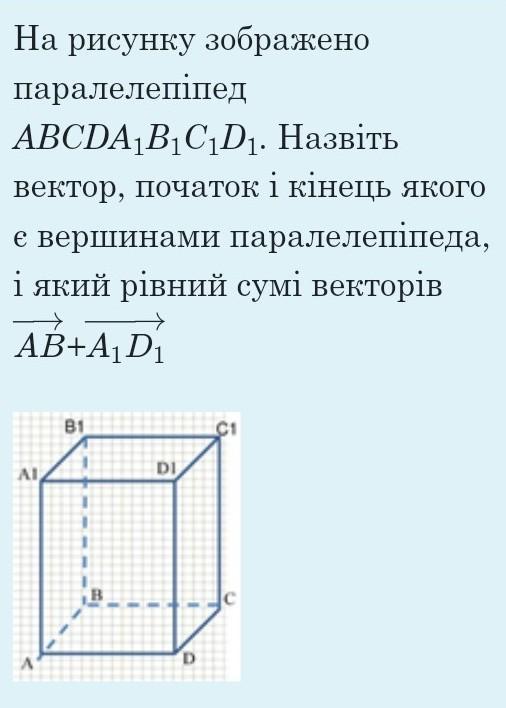 Вектор АВ = А1В1 Вектори АВ1 + A1D = А1С1 ( по правилу додавання векторів )