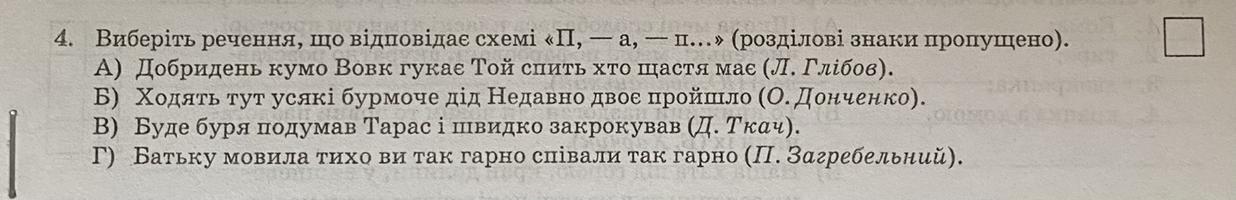 Срочно даю 35 балів ‼️‼️‼️Виберіть речення, що відповідає схемі «П, -а, -п.... (розділові знаки пропущено).