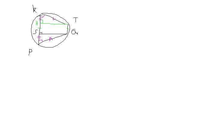 Если трапеция вписана в окружность, то она равнобокая. Значит, КТ = QP и <P = < K. Проведем TH ⊥ KP.