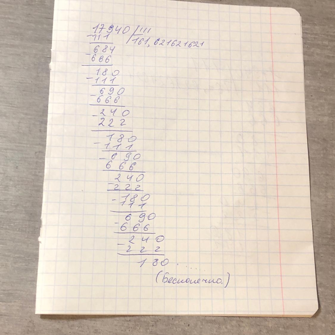 179 на 111 не делится. Делим 111 на 111. Вычитаем. Получается 684. 684 на 111 не делится.Делится 666.Вычитаем. получается 180. 180 не делится на 111. делится 111. Вычитаем. 690. 690 на 111 не делится. делится 666. вычитаем. Получается 240. 240 не делится на 111. делится 222. вычитаем. получается 180. 180 не делится на 111. делится 111. ответ: 161,ост. 69.