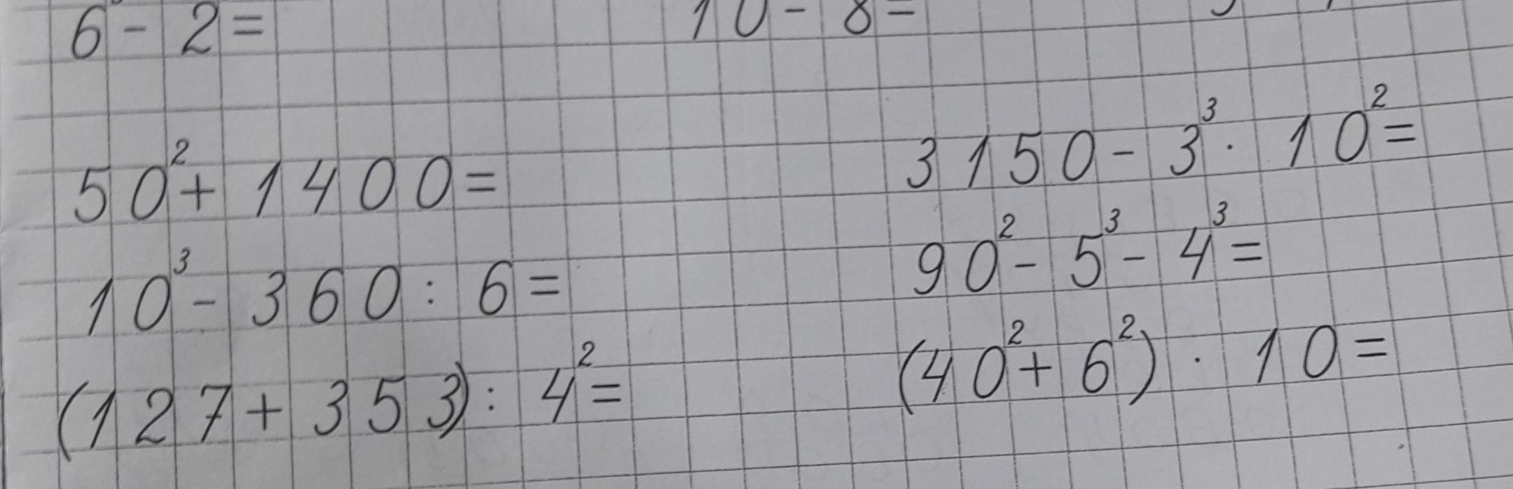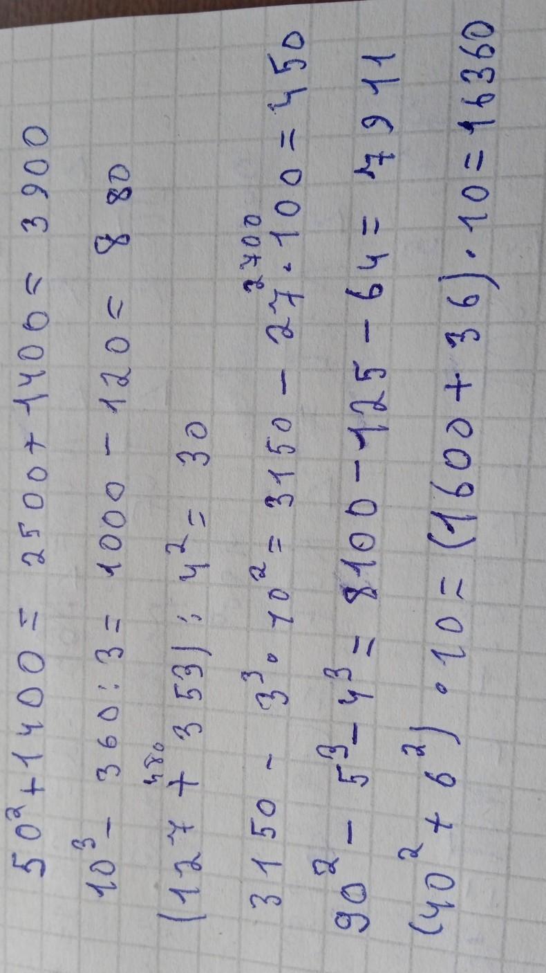 10³ - 360 : 6 = 940 90² - 5³ - 4³ = 711