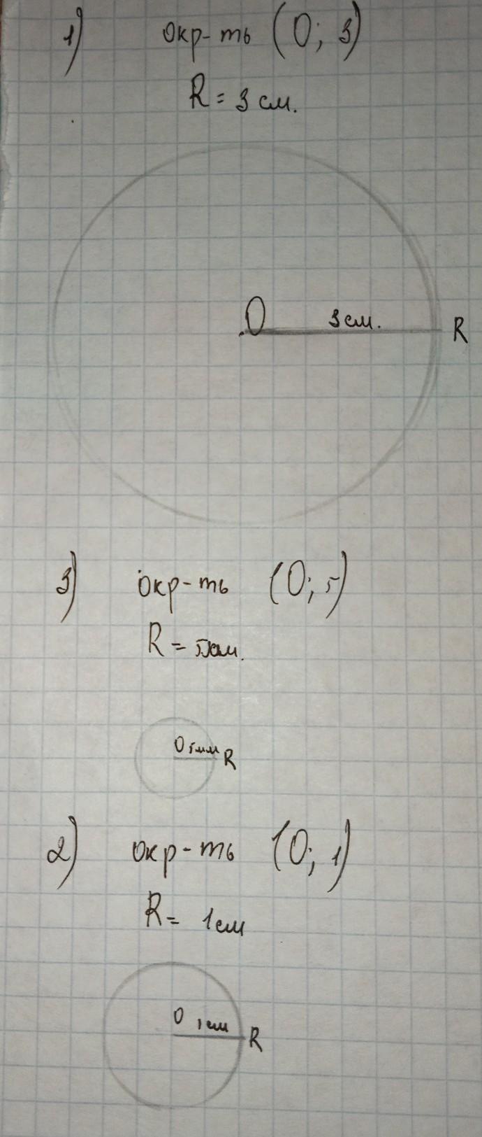 Постройте окружность с радиусом длинной:1) 3 см.; 2) 1 см. 5 мм.