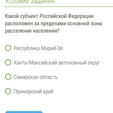 Какой субъект Российской Федерации расположен за пределами основной зоны расселения населения ?
