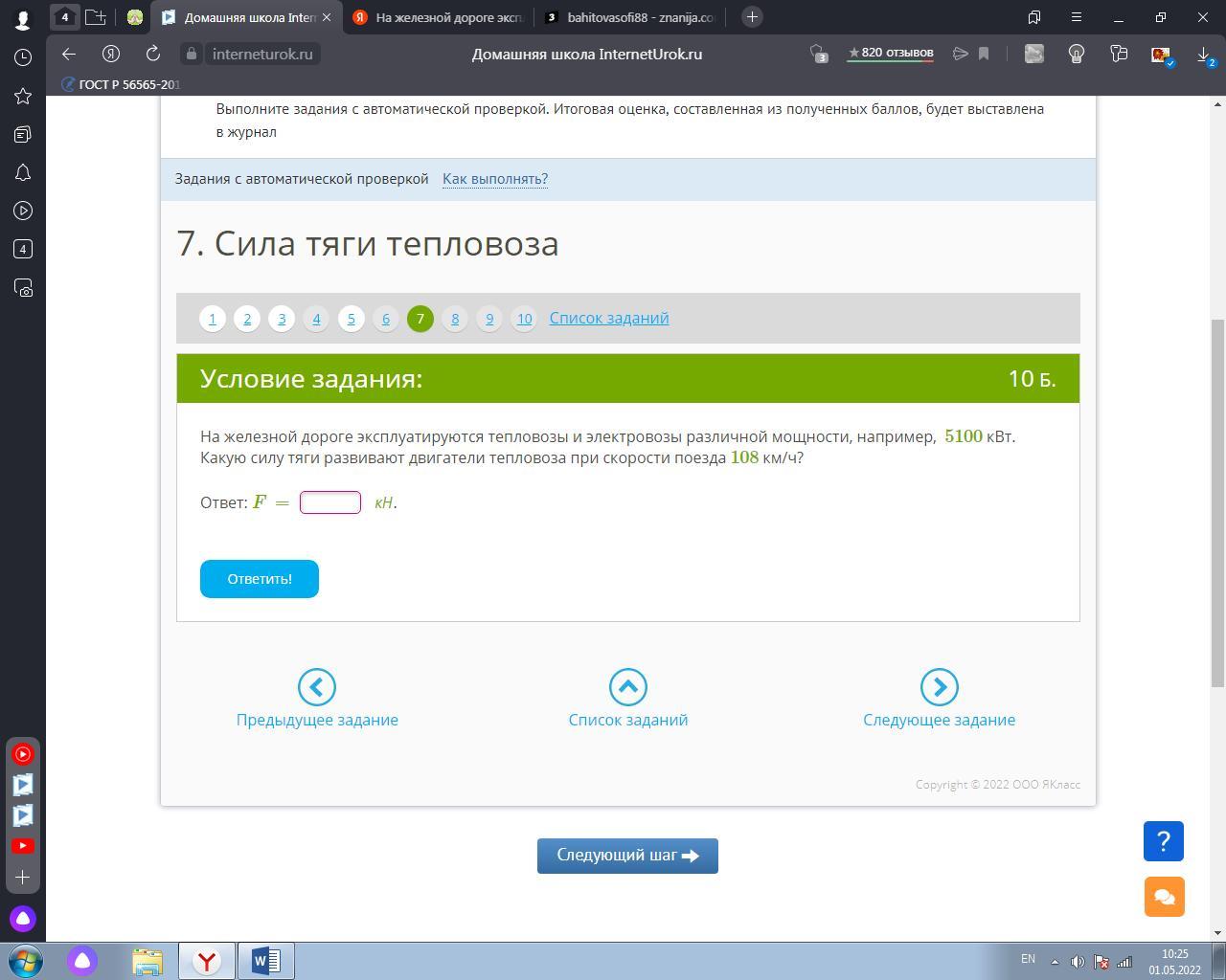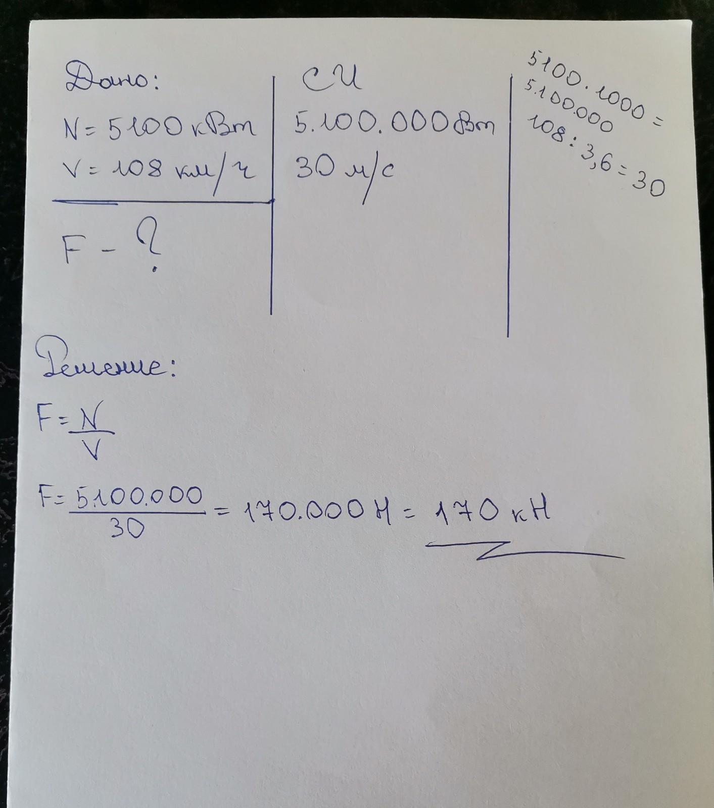 На железной дороге эксплуатируются тепловозы и электровозы различной мощности, например, 5100 кВт. Какую силу