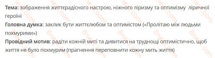Тема:зображення ліричної героїні,яка передає радість усім навколо