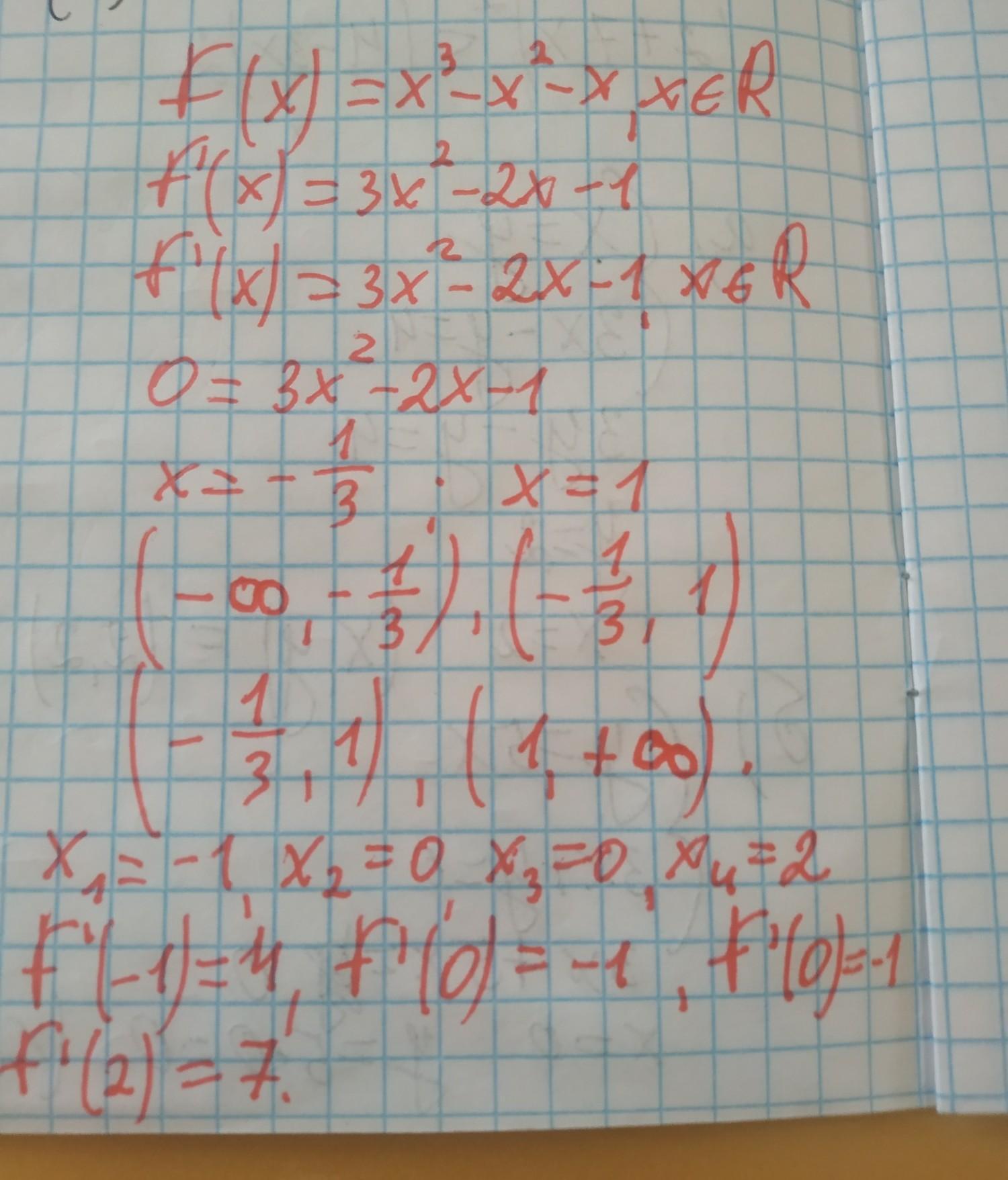 знайдіть проміжки зростання та спадання та точки екстремуму функції f(x) =x³-x²-x