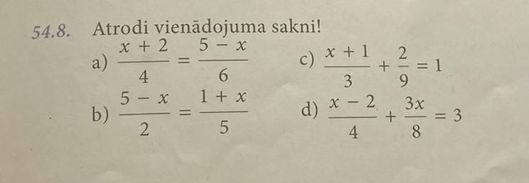 a) 6x+12=20-4x b) 25-5x=2+2x