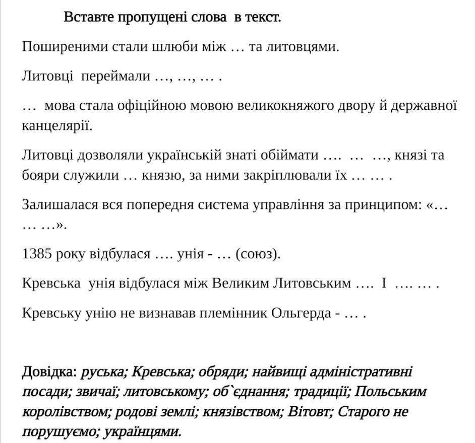 Вставте пропуски в текст, використовуючи слова із довідки (слова, які вставляєте виділяйте (підкреслюйте))