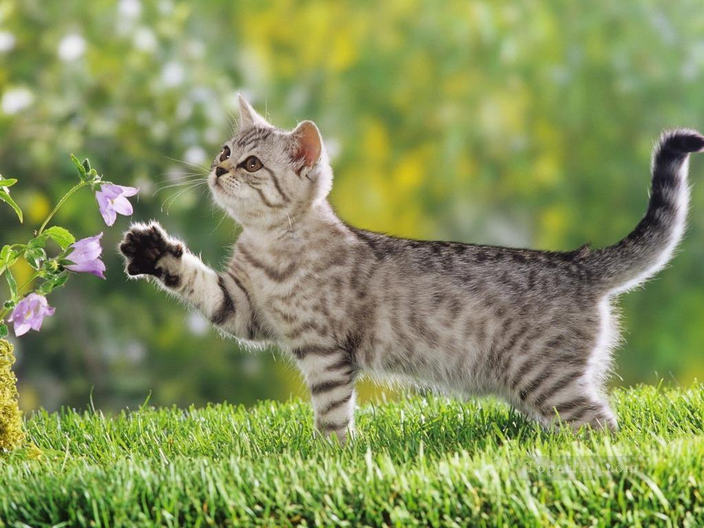 - Кот заинтересовался растением- колокольчиком. Он пытается потрогать его лапкой. Наверняка он пытается кого то задеть на растении, плчёлку или мушку