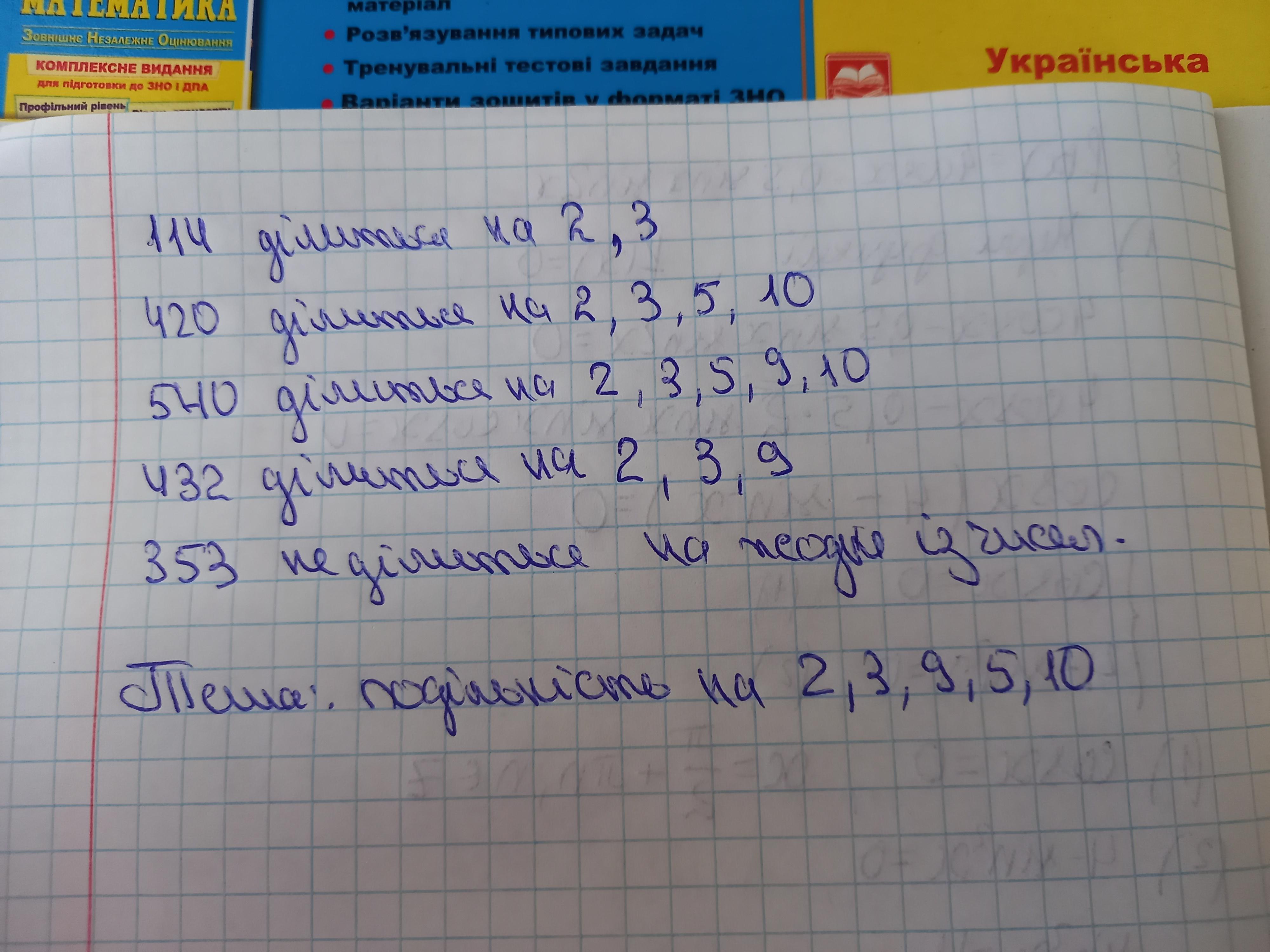 Визначити на які з чисел 2,3,5,9,10 діляться числа:114,420,540,432,353.Бажано дати відповідь сьогодні