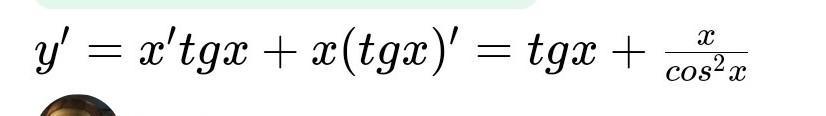 y' = ( x•tgx )' = x'•tgx + x •( tgx )' = 1 • tgx + x• 1/cos²x = tgx + x/cos²x ;
